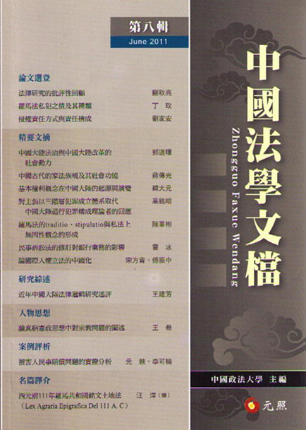 近日,公司陈华彬教授的论文《罗马法的traditio、stipulatio与私法上无因性概念的形成》(原文载《中国法学》2009年第5期)由中国政法大学主办、中国政法大学比较法学研究院编辑、台湾元照出版有限公司出版的《中国法学文档》第八辑摘编成“精要文摘”以繁体字的形式予以发表。