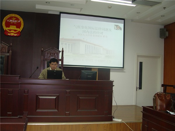 2010年11月24日,来自全国人大环境与资源保护委员会调研室的翟勇副主任在304永利集团官网入口模拟法庭进行了一场精彩的讲座。此次讲座的题目是《应对气候变化的国际法问题与国内法应对》,由公司蒋劲松教授做主持,朱家贤副教授做点评。