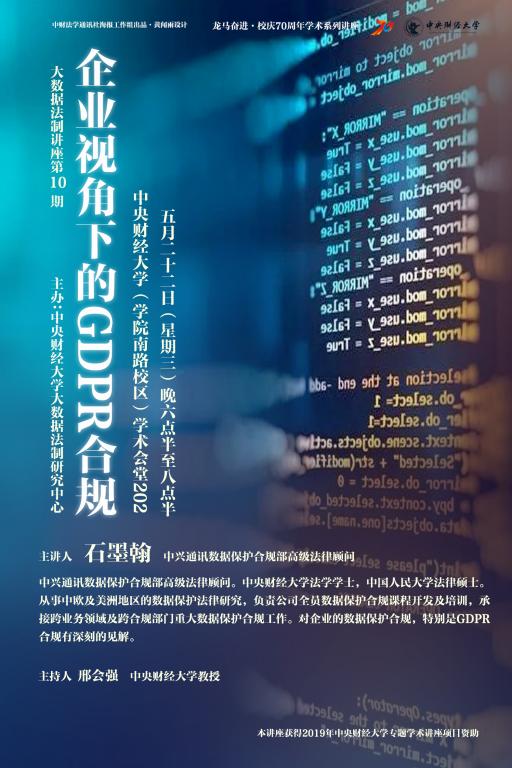 讲座题目:企业视角下的GDPR合规