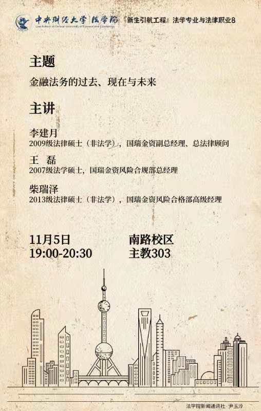 柴瑞泽,2013级法律硕士(非法学),现任国瑞金融资产管理有限公司风险合规部高级经理。2016年中财304永利集团官网入口毕业后,入职中电科电子装备集团有限公司法律部工作三年,2019年4月入职国瑞金资。