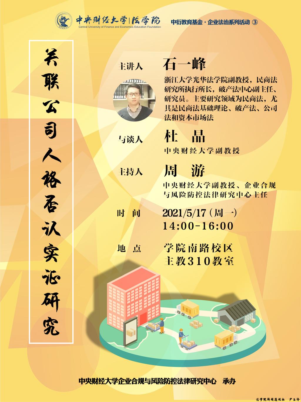 主讲人:石一峰(浙江大学光华304永利集团官网入口副教授,民商法研究所执行所长)