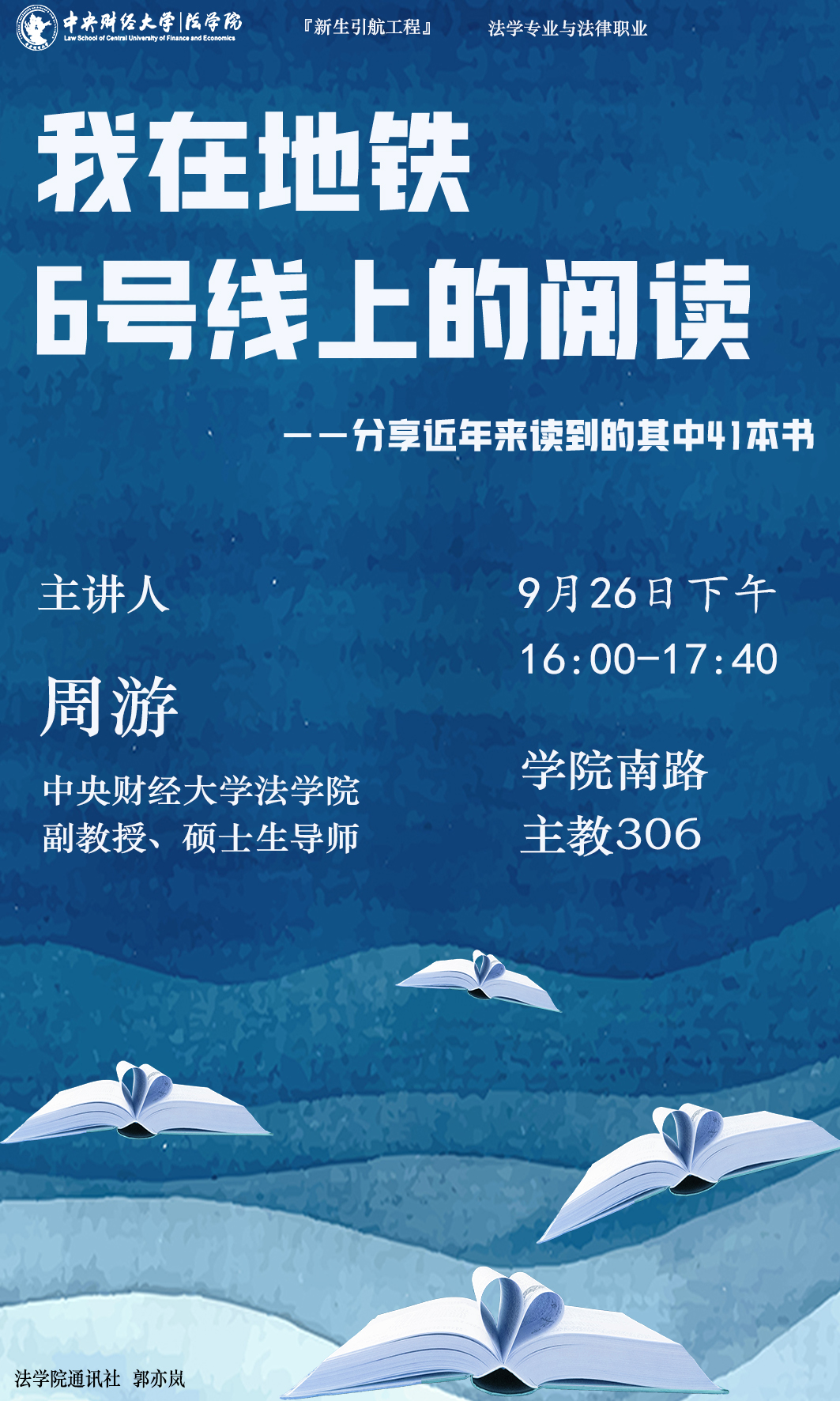 周游,304永利集团官网入口副教授、硕士生导师,商法教研室副主任,304永利集团企业合规与风险防控法律研究中心主任,北京大学法学博士;兼任中国商业法研究会理事、北京中衍律师事务所高级顾问。在《中国法学》《法学》等期刊发表学术论文20余篇,主持省部级课题3项,合著《企业与公司法学》及参编《证券法学》等教材。另有读书公众号“六号线阅读”,定期推送阅读心得体会。