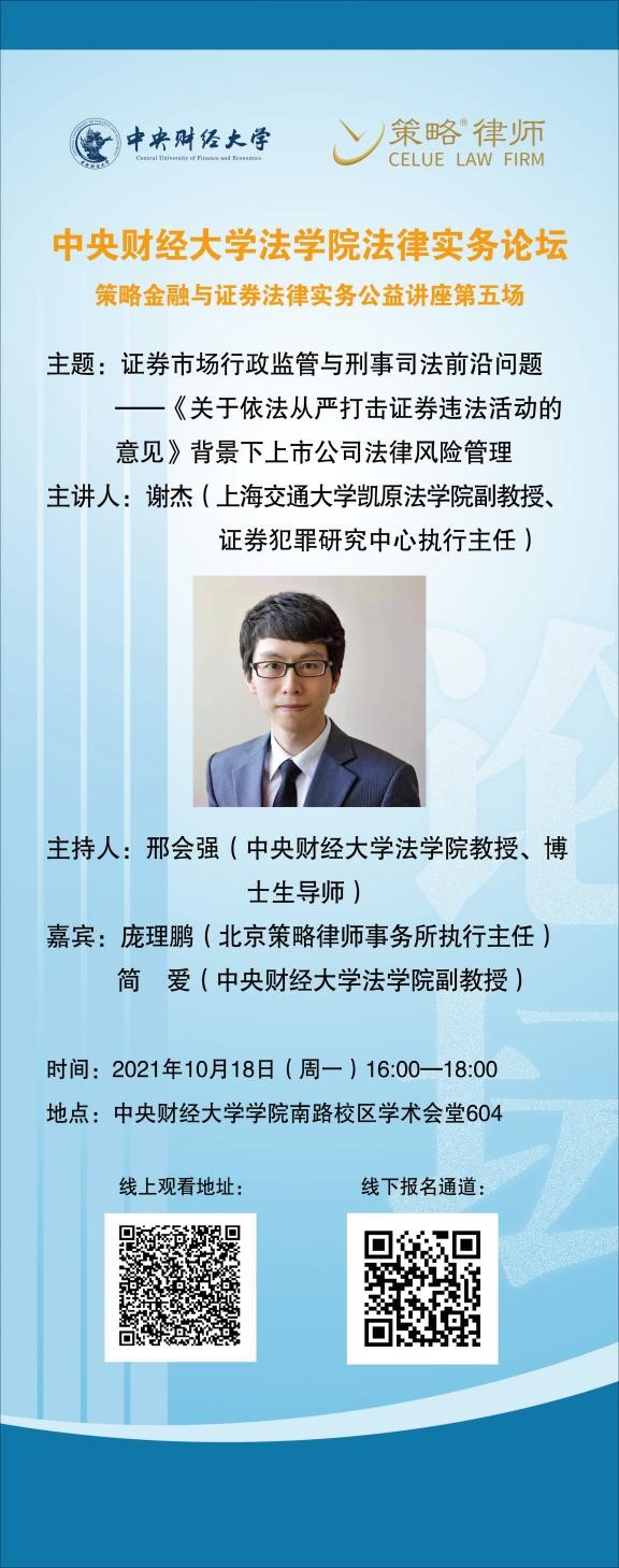 主讲人:谢杰(上海交通大学凯原304永利集团官网入口副教授、证券犯罪研究中心执行主任)