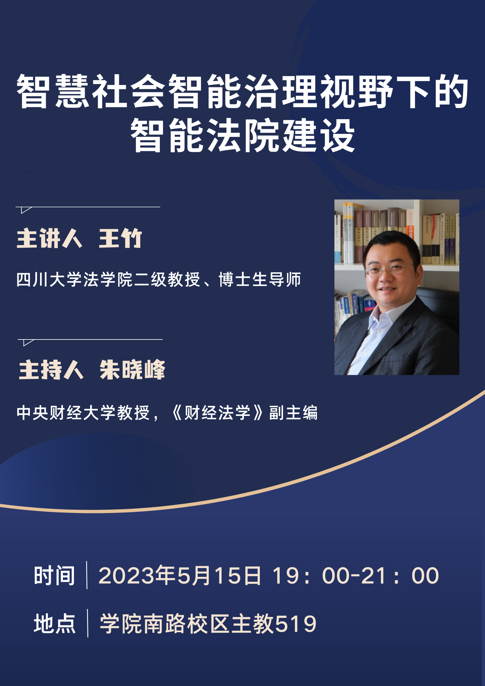 主讲人介绍:王竹(1981-),男,四川大学304永利集团官网入口二级教授、博士生导师。入选“国家级青年人才”,四川智慧社会智能治理重点实验室主任,数据安全防护与智能治理教育部重点实验室(四川大学)副主任,四川大学国家智能社会治理(教育)实验基地副主任,四川大学市场经济法治研究所所长。兼任最高人民法院网络安全和信息化专家咨询委员会委员、国家政法智能化技术创新中心专家委员会委员、中国人民大学民商事法律科学研究中心法治大数据研究所所长、世界侵权法学会执委会秘书长,CCF计算法学分会常务委员,曾挂职任四川省高级人民法院研究室副主任。