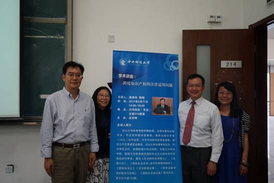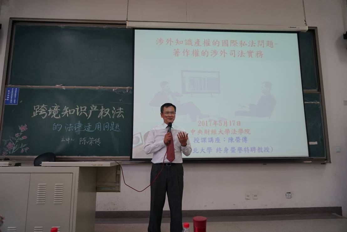 应公司邀请,2017年5月17日下午,台北大学终身荣誉特聘教授陈荣传来院讲授“跨境知识产权的国际私法问题”。讲座在沙河校区主教214教室举办,副经理王克玉教授主持,杜颖教授点评。