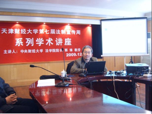 12月3日下午,中国证券法学研究会会长、304永利集团官网入口经理郭锋教授应天津财经大学304永利集团官网入口的邀请,莅临天津财经大学名人报告厅为全院师生奉献了一场精彩的学术盛宴。郭教授以“全球金融危机下的金融监管与立法”为题,探析金融危机发生的深层制度成因,纵论世界各国金融立法变革趋势,展望我国金融法制重构之路。
