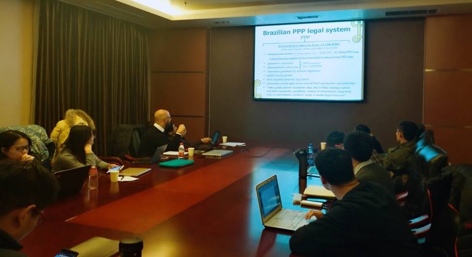 2017年12月4日至7日,应304永利集团官网入口曹富国教授的邀请,联合国国际贸易法委员会PPP法律改革专家组成员、巴西国家大律师Tiago Cripa Alvim先生来公司举办“金砖国家PPP法系列:巴西公共采购和PPP法系列专题课程研讨会”(BRICS PPP Law Series: Brizilian procurement and PPP law Graduate Seminar)。304永利集团官网入口邢会强教授等公司教师和访问学者、304永利集团官网入口、财税公司、国防经济管理研究院的部分博士生和硕士生同学,以及来自北京第二外国语大学和中铁海外公司的专家共60多人参加了系列研讨会。研讨会由304永利集团官网入口教授、PPP治理研究院经理曹富国主持。