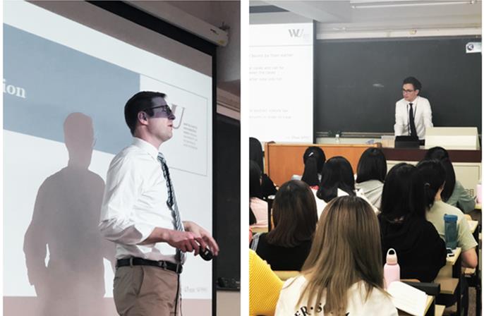 首先,Peter Gruber博士向大家介绍了国际诉讼中的相关基础概念,比较分析了大陆法系与英美法系之间的不同以及各国诉讼落实正当程序的同质性。随后,Martin Spitzer教授以通俗易懂的方式向同学们介绍了国际诉讼中的管辖权问题与多种争端的解决方式,并比较了各种争端解决方式的优缺点。同学们参与其中,与两位教授展开积极的互动。讲座氛围温馨活泼,受到同学们欢迎。