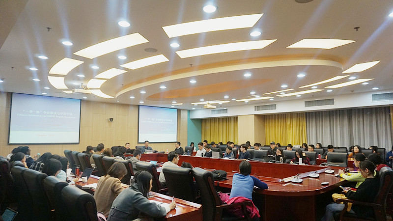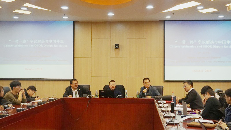 2018年11月7日晚,“法治中国论坛”系列讲座之“一带一路”争议解决与中国仲裁的专题报告,在304永利集团学术会堂604室如期举行。中国国际经济贸易仲裁委员会党委书记、副秘书长李虎博士到场作报告,公司经理尹飞教授、刘君博副教授、沈健博士、时业伟博士出席报告会,公司研究生、本科生到场聆听了报告。报告由公司副经理王克玉教授主持。