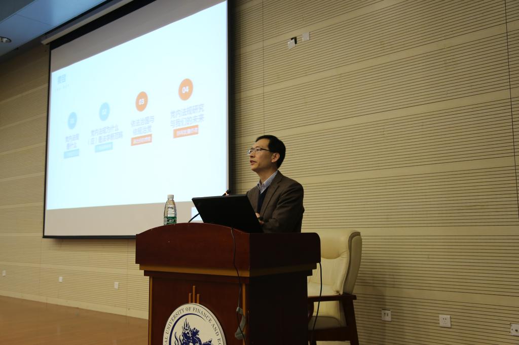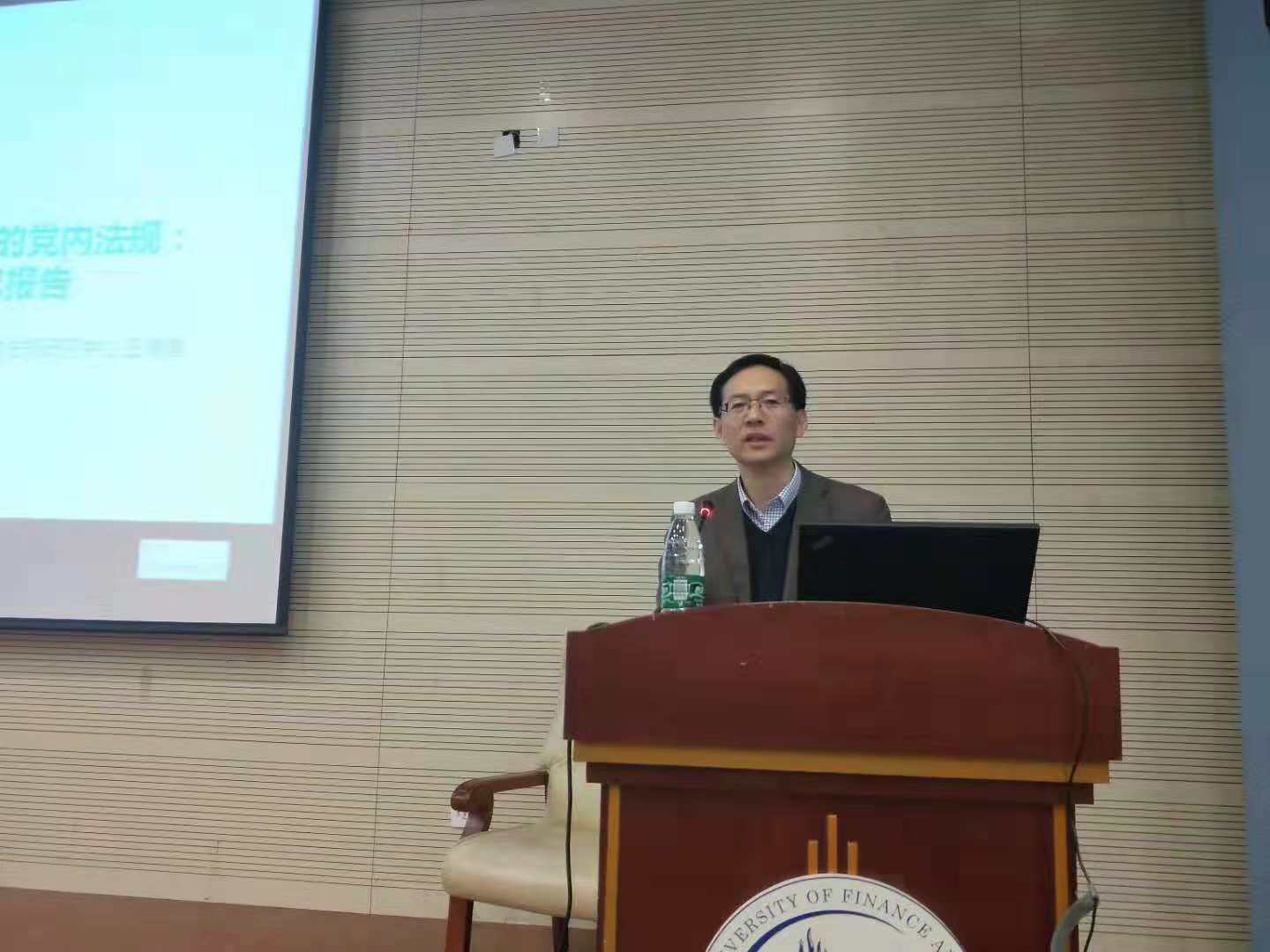 2018年11月30日下午,中国法学会党内法规研究中心主任王伟国应邀到访公司,在学术会堂603为公司师生主讲“作为法学新范畴的党内法规”。本次活动是研究生法理学课程外请讲学活动,由授课老师张小平副教授主持,受研究生院“研究生课堂嘉宾讲学支持计划”支持,本次活动同时为公司党委组织的支部学习活动。公司党委书记吴韬教授、蒋劲松教授、副经理李伟副教授、工会负责人曹晓燕副教授、许冰梅副教授、刘燕副教授、张琪副教授、经理助理赵真副教授、刘权副教授、《财经法学》副主编朱晓峰副教授、武腾副教授、王叶刚副教授、张晓冰博士、马静远博士、周游博士、殷秋实博士、白冰博士、中国法学会党内法规研究中心专职研究人员以及2018级研究生、部分本科生、各党支部负责人参加了学习。