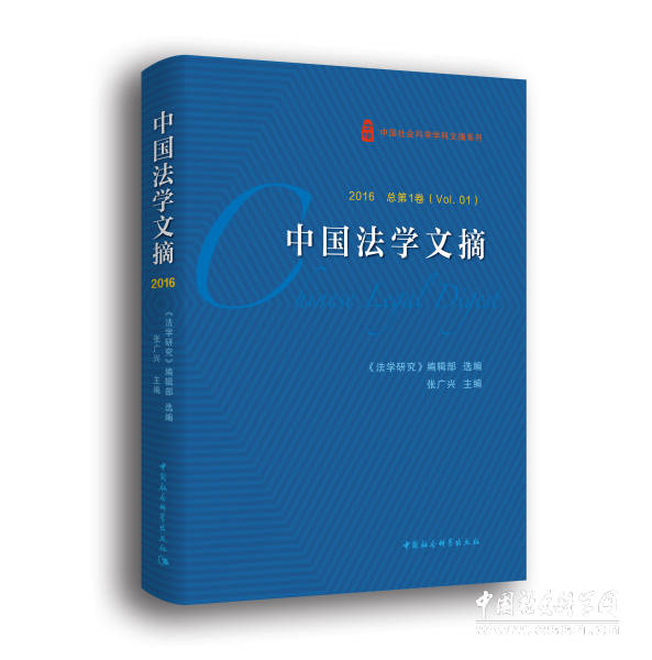 《中国法学文摘》由中国社会科公司法学研究所《法学研究》编辑部选编,张广兴主编,由中国社会科学出版社出版发行。2016卷所摘论文的来源期刊,主要为“中文社会科学引文索引”所收录的21种法学类学术期刊和1种综合性社会科学期刊。该卷设“本卷推荐”“精要摘编”和“论文提要”,摘选了10个二级学科的近200篇论文。
