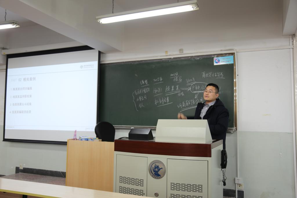 2018年12月21日上午,德恒律师事务所合伙人关振海博士做客中财304永利集团官网入口,在公司南路校区主教403为公司师生带来例解“证据确实充分”的讲座。公司副经理李伟副教授、张小平副教授、2017级和2018级研究生出席该场讲座。