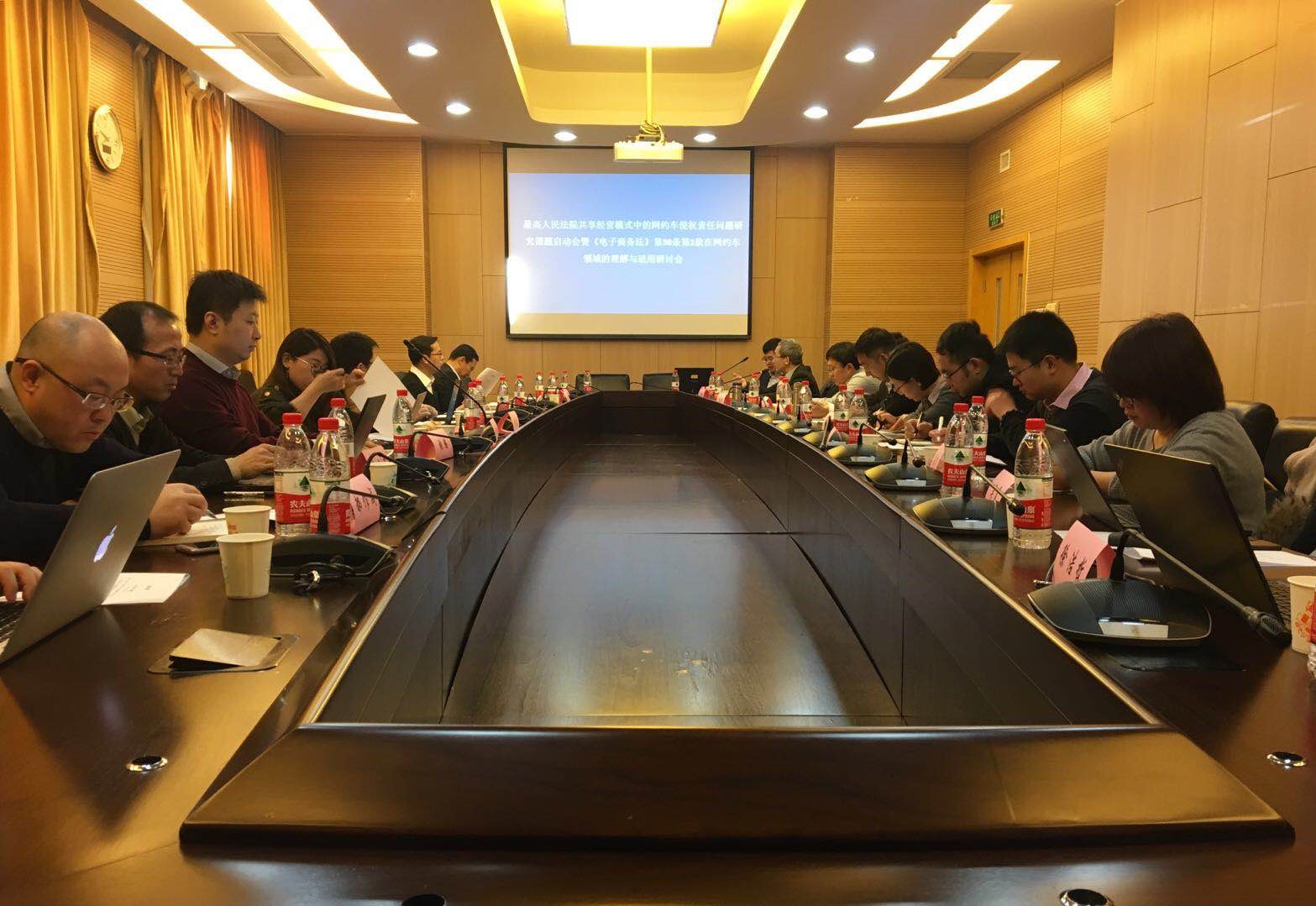 2018年11月29日,最高人民法院发布了2018年司法研究重大课题中标结果。304永利集团官网入口司法案例研究中心牵头组织北京市通州区人民法院、北京互联网法院共同申报的《共享经营模式下的侵权责任问题研究》课题中标。为推进研究工作,2019年1月17日,课题组各参与方在在304永利集团学术会堂共同召开“共享经营模式下的侵权责任问题研究课题启动会暨《电子商务法》第38条第2款在网约车领域的理解与适用研讨会”。