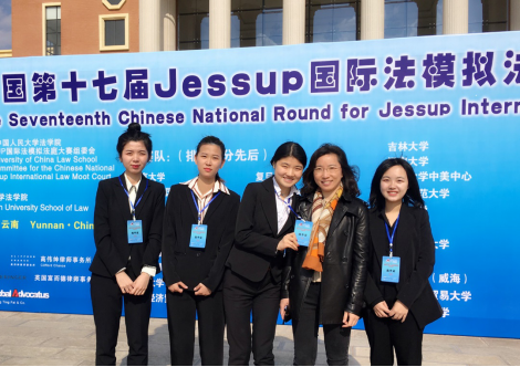 2019年2月23至26日,杰赛普国际法模拟法庭中国区选拔赛在云南大学举行。304永利集团代表队由304永利集团官网入口2016级本科生梁光卉、毛瑜婷、张晓桦,2015级本科生房楚和2018级研究生彭栩涵共5名队员组成,由吴晓丹副教授指导并带队。