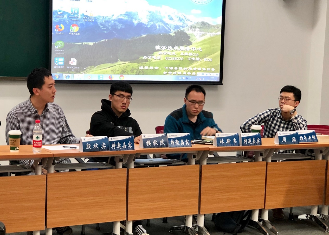 在嘉宾发言环节,殷秋实博士、楼秋然博士、林斯韦博士研究生对发言人的发言和《权力组织》一书表达了各自的看法。殷秋实博士肯定了同学们发言水平的提升,并且从民法学者角度,对商法的起源、国外法律制度移植、法人的性质以及我国公权力机关的“公司化”倾向等方面进行探讨。楼秋然博士认为商法来源于商人自治,在继受国外法律制度时,应当重视与本国原有制度的协调。林斯韦博士研究生则在肯定同学们发言的同时,建议大家提升表达的逻辑性并突出重点;就书中的观点,他借用歌词并风趣幽默地阐释了股东利益至上的本质及其发展历程。