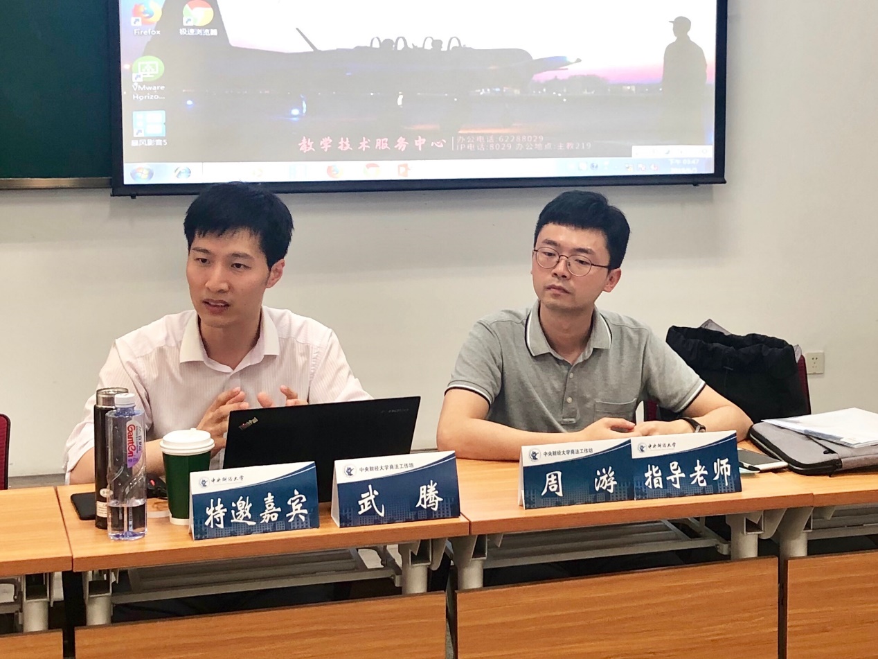 在特邀嘉宾发言环节中,武腾副教授对发言人清晰的思路以及商法学研究工作坊活跃的氛围进行了肯定,并围绕议题就周游博士和发言人提及的内容进行了交流。