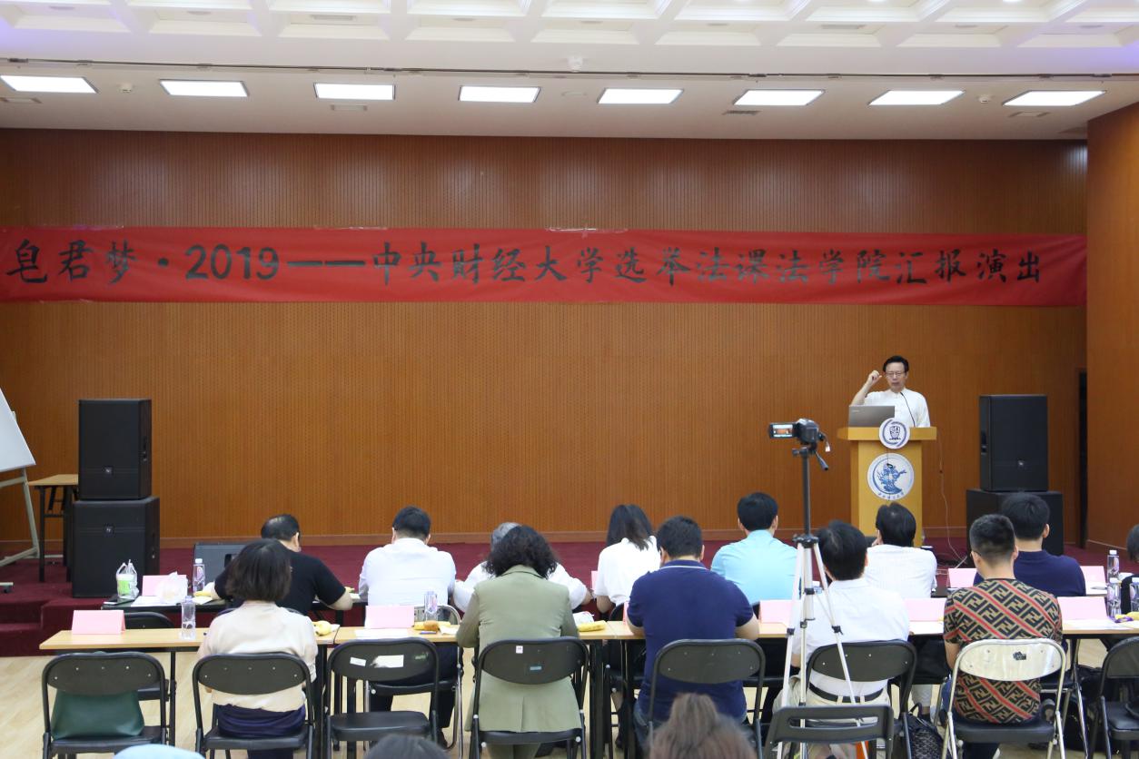 蒋劲松教授向出席本次活动的嘉宾们定义并诠释了“皂君梦”——“皂君梦”即位于北京海淀区皂君庙的304永利集团官网入口的本科生限选课“选举法”以话剧和小品演出形式进行的期中考核。304永利集团官网入口在全国304永利集团官网入口系中独家开设限选课《选举法》,“皂君梦”表达公司为健全我国高校法学课程体系的一份执着。“皂君梦”还体现中财304永利集团官网入口部分师生讲好、学好选举法课的梦幻般追求。蒋教授经过多方面考量,最终将选举法课程的期中考核形式确定为员工自编、自导、自排、自演话剧和小品,实现学术与艺术的结合,并且因为授课地点的变化,自2018年起将这种活动系列的名称由“清清的沙河”变更为“皂君梦”。“皂君梦”评委团的阵容表明,《选举法》课程主动请求公司党委、国内法学界、政治学界和关注高校法学教育的社会各界检阅和考核本课程的教学在政治上是否正确、学问上是否专深、效果上是否快乐。