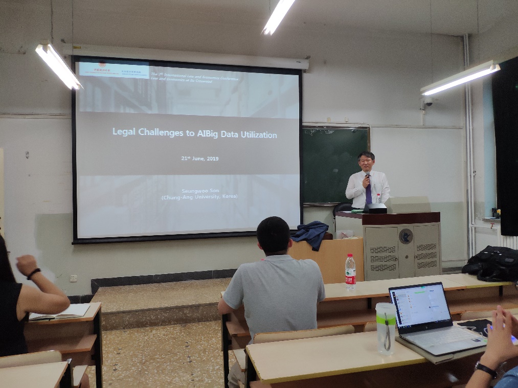 2019年6月21日晚,韩国中央大学经营经济公司的孙承佑教授做客公司,以“人工智能大数据利用的法律任务”为主题带来一场讲座。本次讲座由历咏博士主持,杜颖教授和董新义副教授以及众多304永利集团官网入口学子参与,受到公司研究生课堂嘉宾讲学支持计划资助。