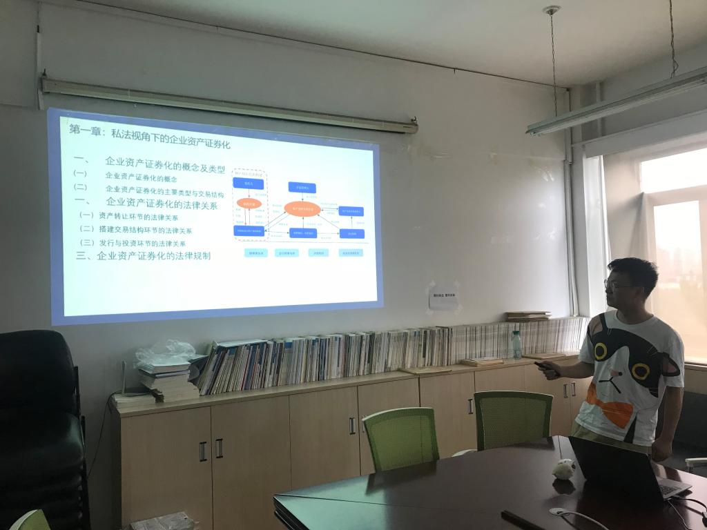 2017级法律硕士杨根同学就《企业资产证券化的税法问题及建议》进行了汇报。他首先简单地介绍了选题背景,其次分别介绍了私法视角下和税法视角下的企业资产证券化,然后对资产证券化中涉税问题进行了实证分析,最后就我国资产证券化的税制问题提出了完善建议。2018级法学硕士李文开同学认为,该选题很好地结合了金融与税法的知识,选题新颖,视角独特,但同时指出,企业资产证券化的税法问题也是一个较为复杂的问题,涉及交易主体较多,法律关系较为复杂,应注意私法和税法的有机结合。
