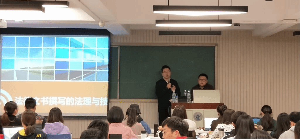 唐铸副庭长从文书评价标准入手,详细讲述了法律文书撰写的法理和技巧,援引经典案例,深入浅出,结合天欣杯比赛内容,为同学们奉献了一场知识盛宴。全体同学对唐铸庭长的精彩讲座报以热烈的掌声。