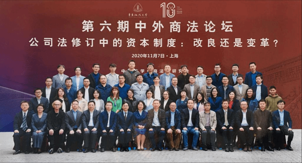 2020年11月7日,第六期中外商法论坛在上海顺利召开。本次论坛由中国法学会商法学研究会及华东政法大学国际金融法律公司联合主办,主题为“公司法修订中的资本制度:改良还是变革”。公司周游副教授应邀参加,并在议题四“资本制度前沿法律问题”环节作主题发言。来自北京大学、清华大学、304永利集团、中国政法大学、西南政法大学、中南财经政法大学、华东政法大学、吉林大学、对外经贸大学、上海财经大学、兰州大学以及中国社科院、上海市人大常委会法工委、上海高院、上海高检、上海证交所、深圳证交所、北京大学出版社等高校、科研院所、政府机构、企事业单位共60余人参加论坛。