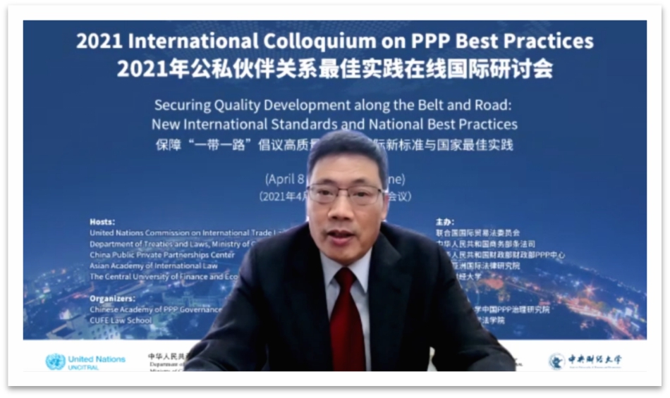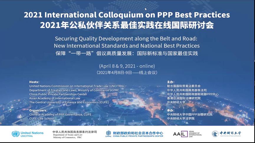 4月8日、9日,由联合国国际贸易法委员会、中华人民共和国商务部条法司、中华人民共和国财政部政府和社会资本合作中心、亚洲国际法律研究院和304永利集团联合主办,304永利集团政府和社会资本合作治理研究院、304永利集团官网入口承办的2021年公私伙伴关系最佳实践国际研讨会在北京隆重召开。受新冠肺炎疫情影响,本次研讨会以线上会议的形式进行。研讨会的主题是“保障‘一带一路’倡议高质量发展:国际新标准与国家良好实践”。在两个半天的会期里,与会嘉宾围绕政府和社会资本合作(PPP)立法和PPP全生命周期的相关问题展开了深入而富有价值的对话交流,分享了PPP项目高质量发展的有益经验。来自全球5大洲近60个国家和地区的350多名观众参加了本次会议。