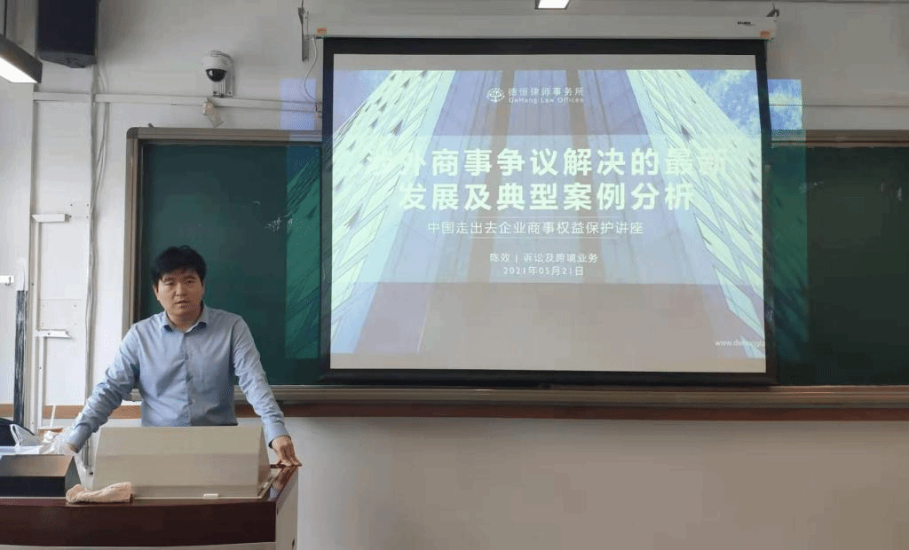 2021年5月21日下午两点,304永利集团官网入口国际法工作坊“涉外商事争议解决的最新发展及典型案例分析”专题讲座在304永利集团公司南路主教310室成功举办,本期研讨会由公司沈健副教授主持,邀请德恒律师事务所合伙人陈效律师向同学们分享涉外诉讼业务的最新发展和典型案例。此次活动包括案例分享、提问两个环节,共有三十余名师生参与分享与讨论。