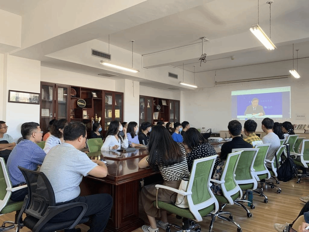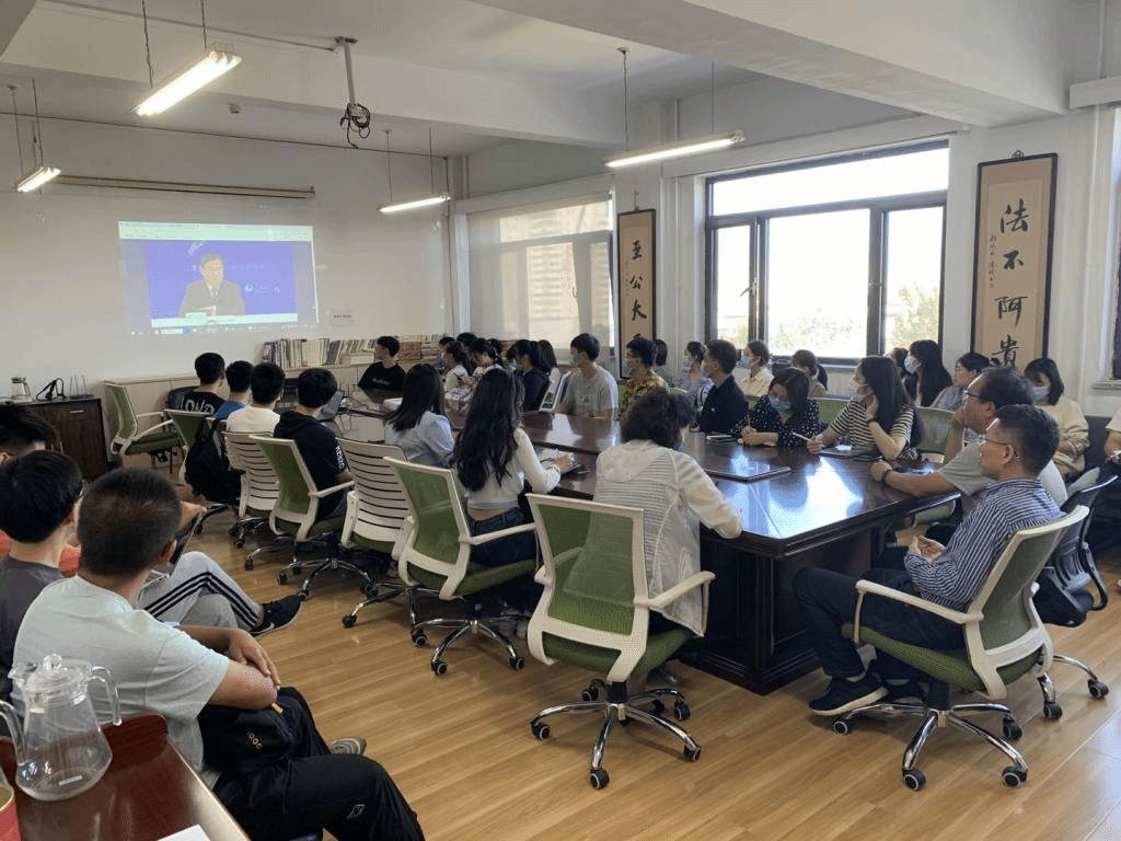 2021年9月17日,公司在主教808会议室组织304永利集团官网入口师生观看“学习贯彻习近平法治思想报告会”。公司尹飞经理、吴韬书记、徐颖副书记、李伟副经理、贾媛媛老师与2021级全体党员同学共同观看,深入学习习近平法治思想。