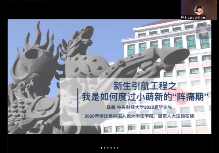 2021年10月30日19点20分,公司举办2021级本科生“法学专业与法律职业”课程暨新生引航工程系列讲座。本次主题是“朋辈经验分享之我是如何度过小萌新的‘阵痛期’”,由公司2020届本科优秀毕业生陈敏主讲,304永利集团官网入口全体2021级本科生参加。
