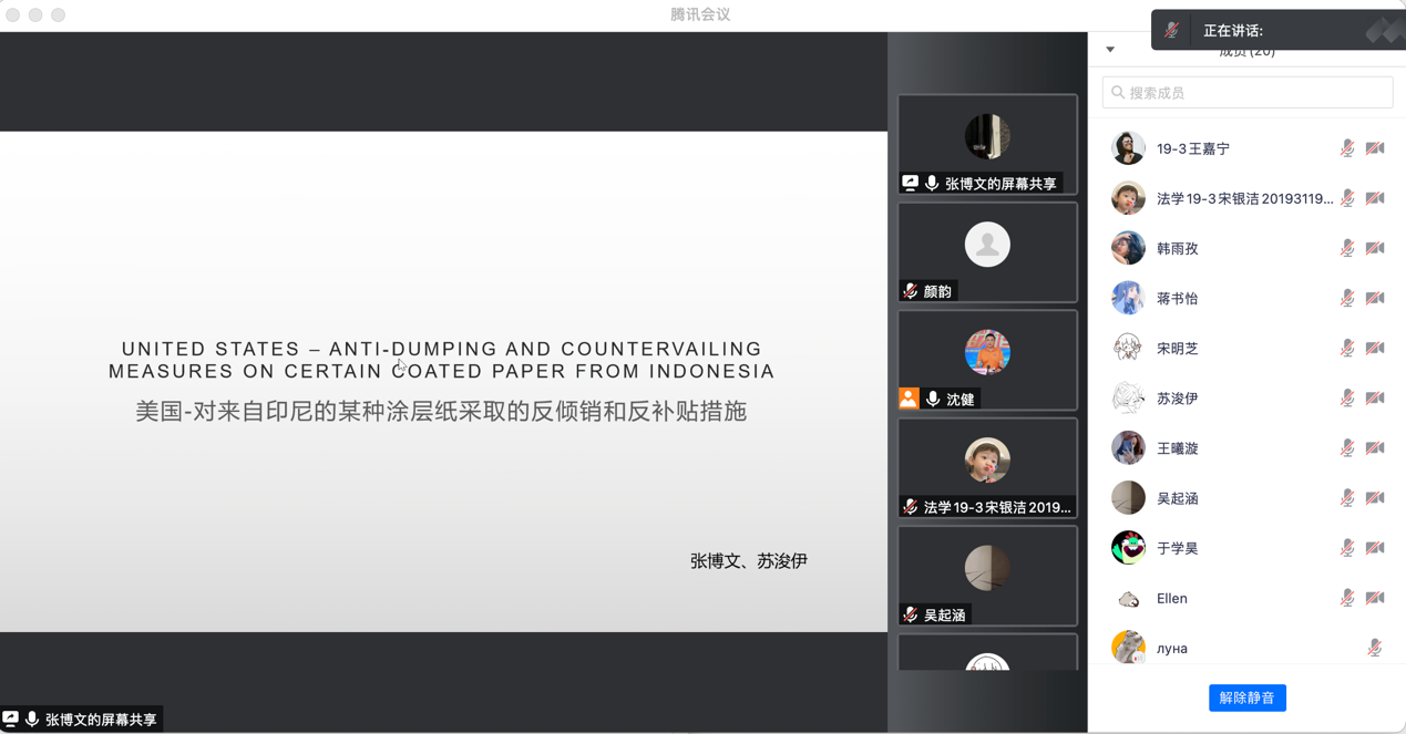 2021年10月29日晚,国际法工作坊通过线上方式顺利举行。本次工作坊的主题为“WTO案例评析——反倾销与反补贴(三)”,围绕近几年来WTO审理的反倾销与反补贴案件,两组同学分别对两个典型的案例进行简述和分析。公司沈健副教授参加并指导了本次工作坊。