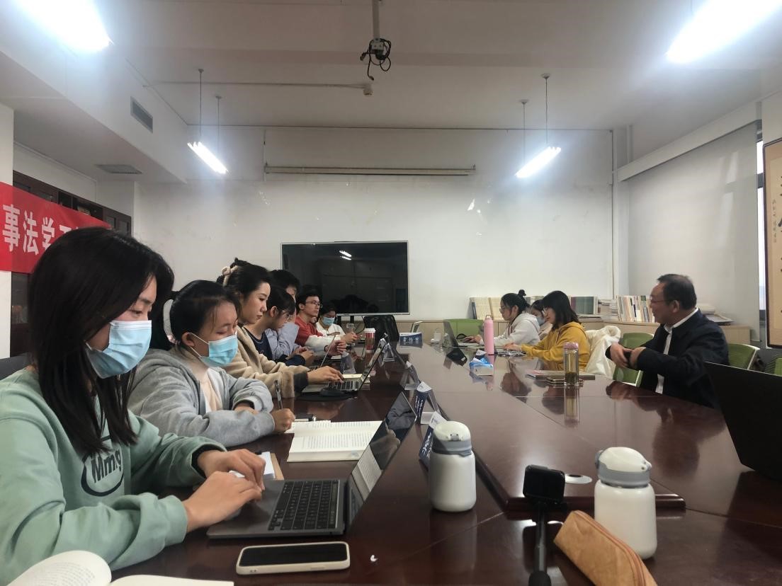 2019级本科生杨烁就“如何定义正义和如何看待法”发表了自己的心得,并从法理学的角度分析了“法是什么”的问题。2020级本科生张子帆、2021级本科生田敏瑞同学也积极回答老师的问题并参与了讨论。