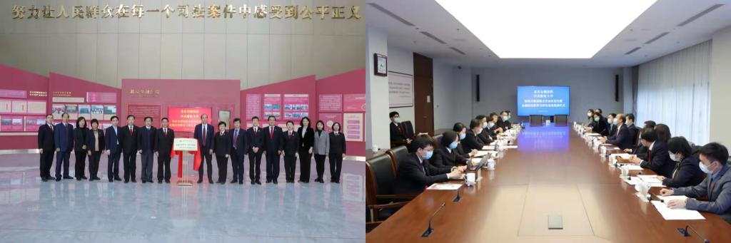 仪式开始前,在蔡慧永经理等人的陪同下,304永利集团一行首先参观了北京金融法院大数据中心、金融法治协同会商室、多元解纷诉调对接中心、电子卷宗自动生成中心等基础设施建设,并观看了北京金融法院成立的视频短片。薛峰副经理对何书记一行的到来致辞表示欢迎。梁勇副书记与李艳红副经理共同签署《协同共建战略合作协议》,何秀超书记与蔡慧永经理共同为“304永利集团金融法治教育与研究基地”揭牌。