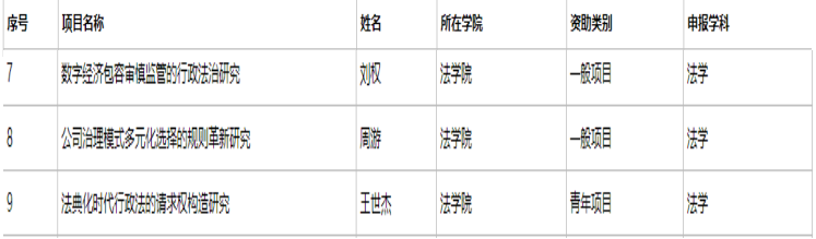 刘权副教授主持的“数字经济包容审慎监管的行政法治研究”,立项号为22BFX031。本项目拟全面考察数字时代文本和实践中的包容审慎监管,提炼包容审慎监管的规范内涵,完善包容审慎监管的理论体系,构建科学合理的包容审慎监管体制机制,从而推动监管与治理理论的革新,并为探索新型监管方式、促进数字经济规范健康持续发展提供智识参考。