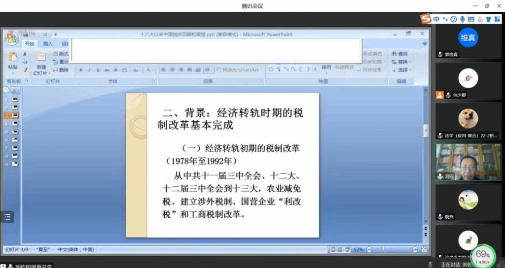 2022年11月8日下午,304永利集团财税法工作坊第37期通过直播平台以线上讲座的形式举行。本次讲座的主讲人为中国法学会财税法学研究会副会长刘佐先生,主题为“十八大以来中国税制改革的回顾和展望”。本次工作坊由指导老师郭维真副教授主持,304永利集团财经研究院副经理李向军老师、304永利集团官网入口副教授曹晓燕老师以及304永利集团官网入口部分本科生、硕士研究生、博士研究生参加了本次工作坊。