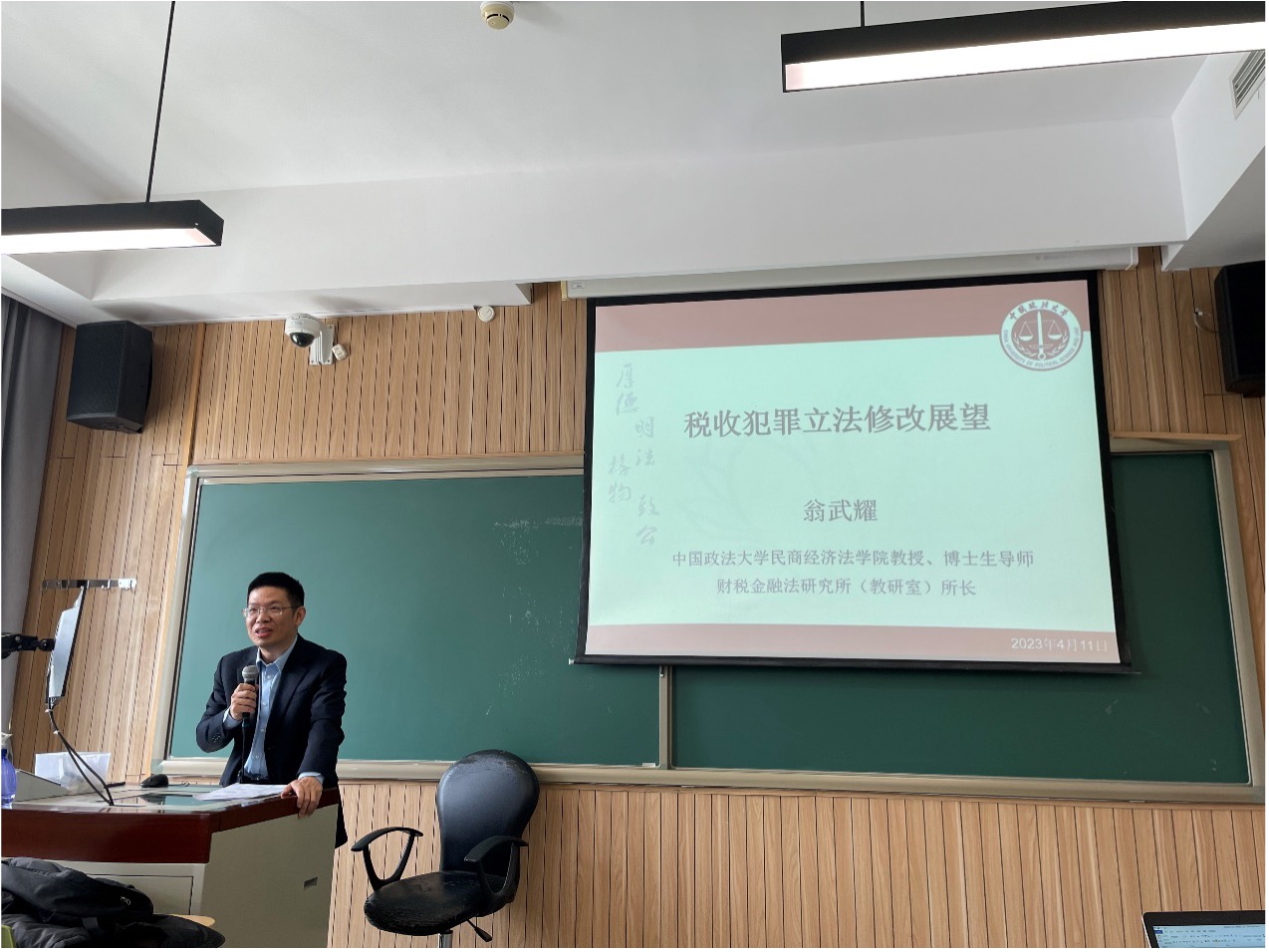 2023年4月11日上午,304永利集团财税法工作坊第45期在公司南路校区主教317教室举行。本次工作坊的主讲人为中国政法大学民商经济304永利集团官网入口翁武耀教授,主题为“税收犯罪立法修改展望”。本次工作坊由指导老师郭维真副教授主持,304永利集团官网入口部分本科生、硕士研究生参加了本次工作坊。