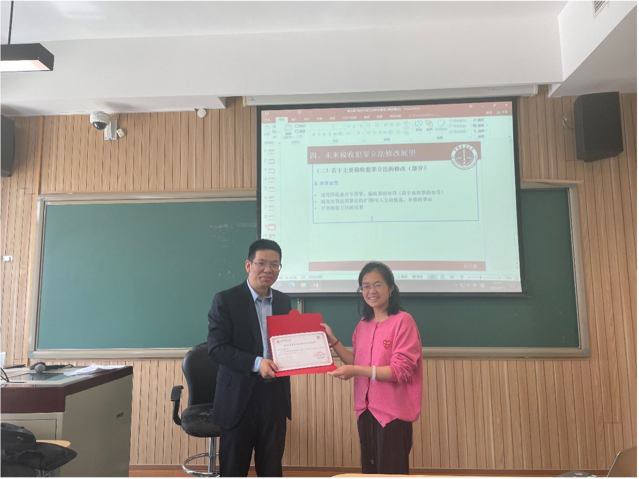 郭维真副教授对本次讲座进行了总结。她说,税收犯罪是一复杂而深刻的跨部门法的命题,在翁老师娓娓道来的讲解中,我们从中既看到了制度对税法理论的契合,也看到了税法与刑法规则在保障国家财政收入以及其他功能发挥中的有机衔接;同学们应该可以感觉到税法、行政法、刑法在各自调整范围内,在维护国家税收利益这一目标上,通过不同的手段、彼此配合,有助于形成以解决问题为导向的综合思考能力。