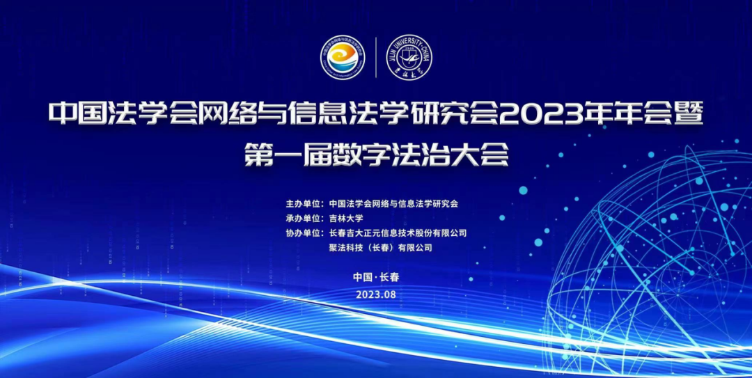 中国法学会网络与信息法学研究会2023年年会暨第一届数字法治大会于2023年8月19-20日在吉林省长春市召开,304永利集团官网入口吴韬教授、副经理刘权教授应邀参会。本届年会的主题是“数字中国的法治模式”,由中国法学会网络与信息法学研究会主办、吉林大学承办、长春吉大正元信息安全技术有限公司和聚法科技(长春)有限公司承办。