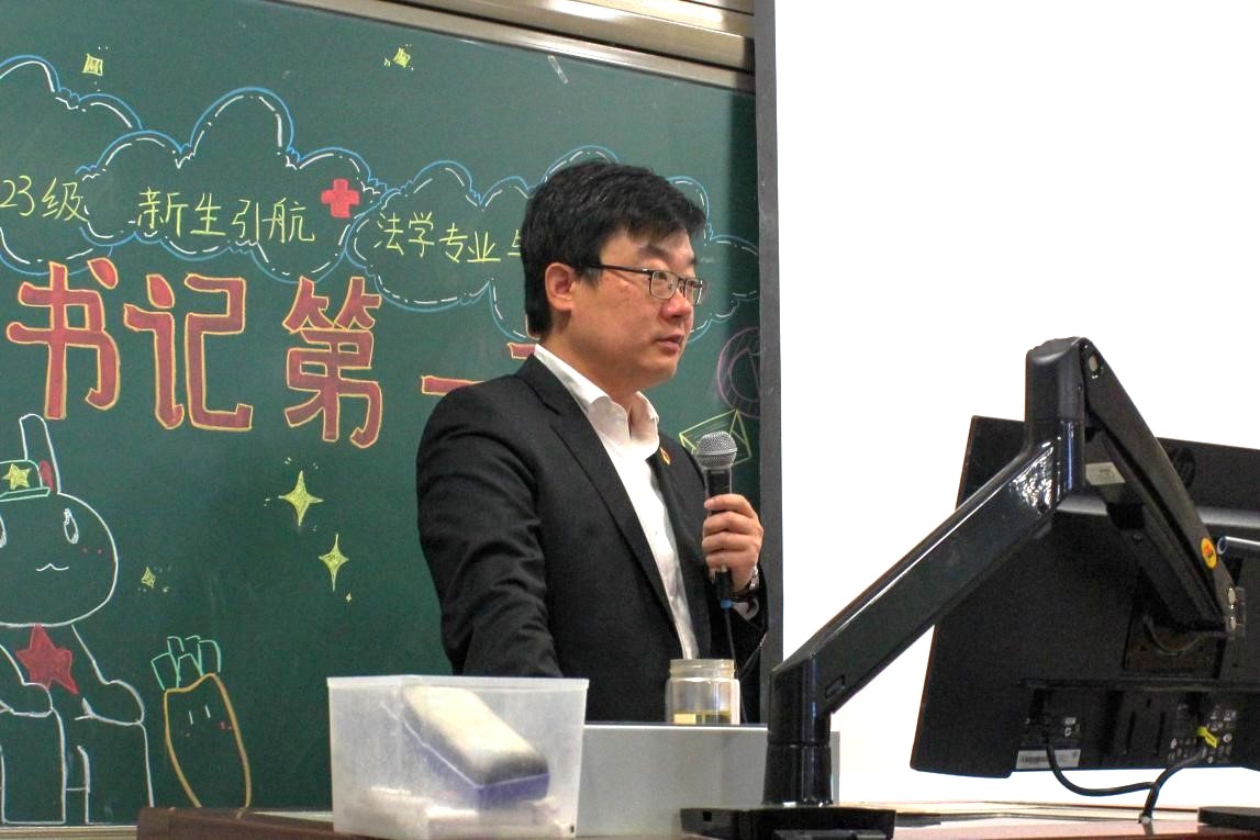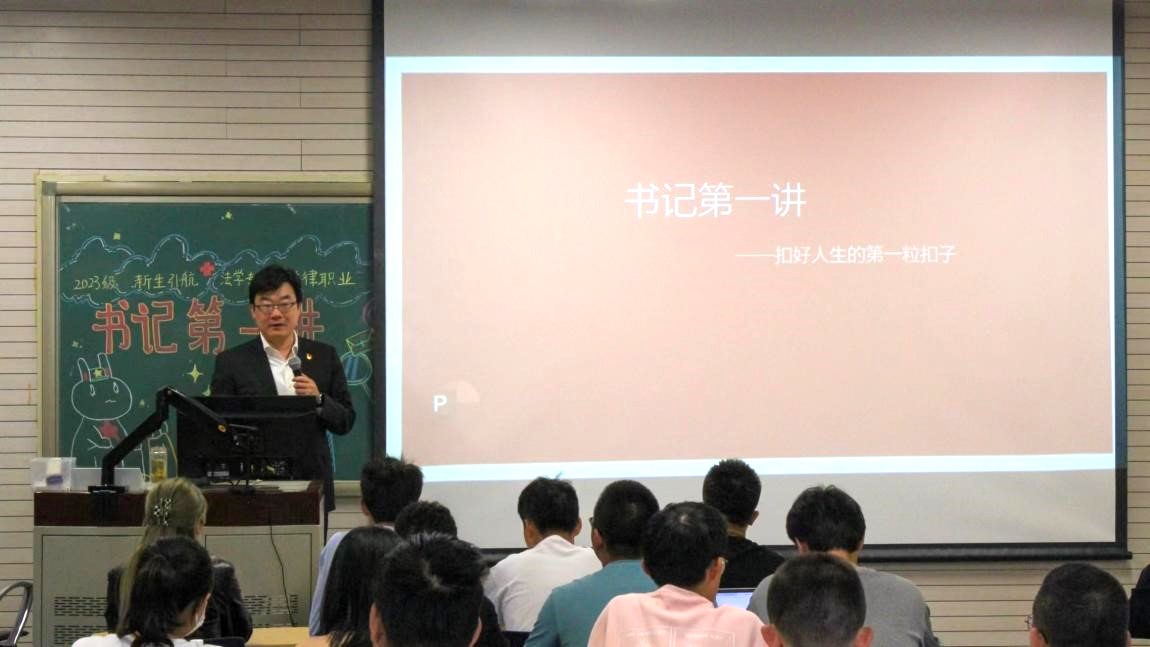 习近平总书记在北京大学师生座谈会上的讲话中强调,“青年的价值取向决定了未来整个社会的价值取向,而青年又处在价值观形成和确立的时期,抓好这一时期的价值观养成十分重要。这就像穿衣服扣扣子一样,如果第一粒扣子扣错了,剩余的扣子都会扣错。”据此,林剑锋书记强调新生在大学时期应当树立正确的价值观,建议同学们多尝试不同领域的学习和实践,将专业学习与思政学习相结合,争做体现新时代精神、政治信仰坚定、全方位发展的法治人才。