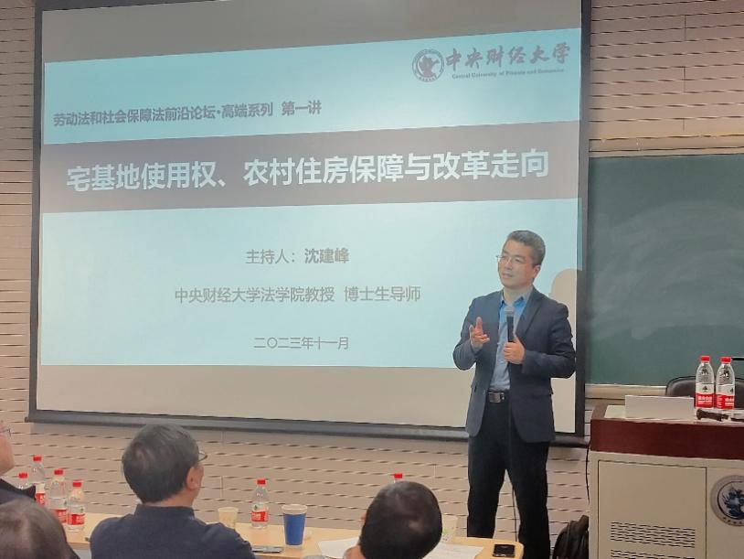 论坛伊始,沈建峰教授介绍了宅基地对于农民住房保障的重要意义、当前宅基地使用权制度所面临的挑战、主讲人与各位与谈人的学术背景以及劳动法和社会保障法前沿论坛·高端系列的基本设想。