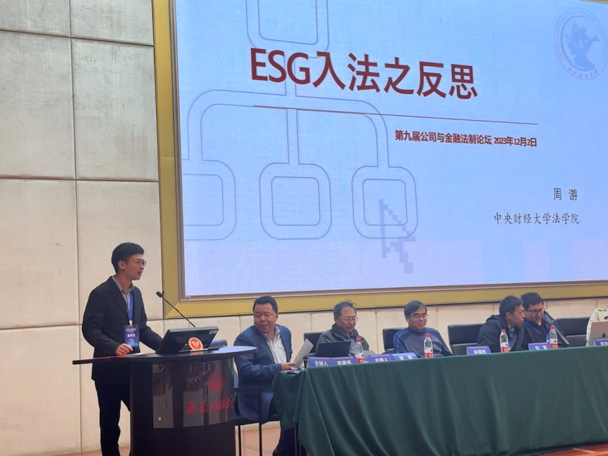 2023年12月2日,第九届公司与金融法制论坛学术研讨会在西南政法大学举办。本届论坛由中国法学会商法学研究会、西南政法大学共同主办,西南政法大学民商304永利集团官网入口、重庆市人文社会科学重点研究基地“市场交易法律制度研究基地”及《现代法学》编辑部联合承办。来自清华大学、北京大学、中国政法大学、304永利集团等国内三十余所高校、十余家核心期刊和司法实务部门的近百位嘉宾齐聚论坛。公司周游副教授应邀出席本次会议。