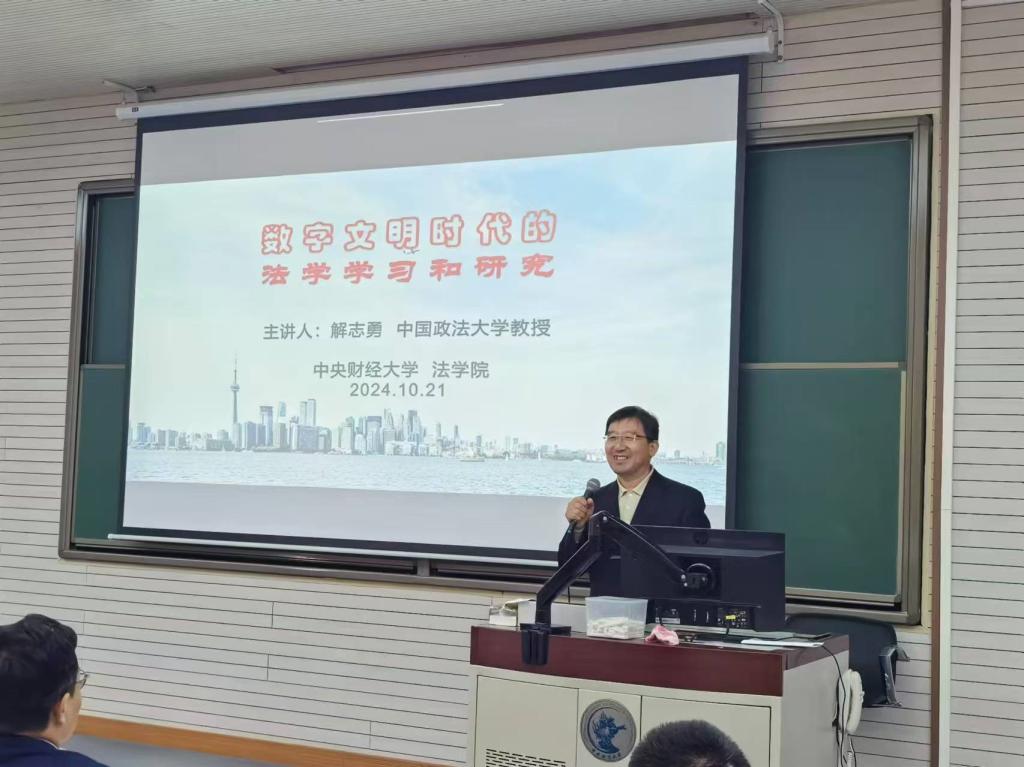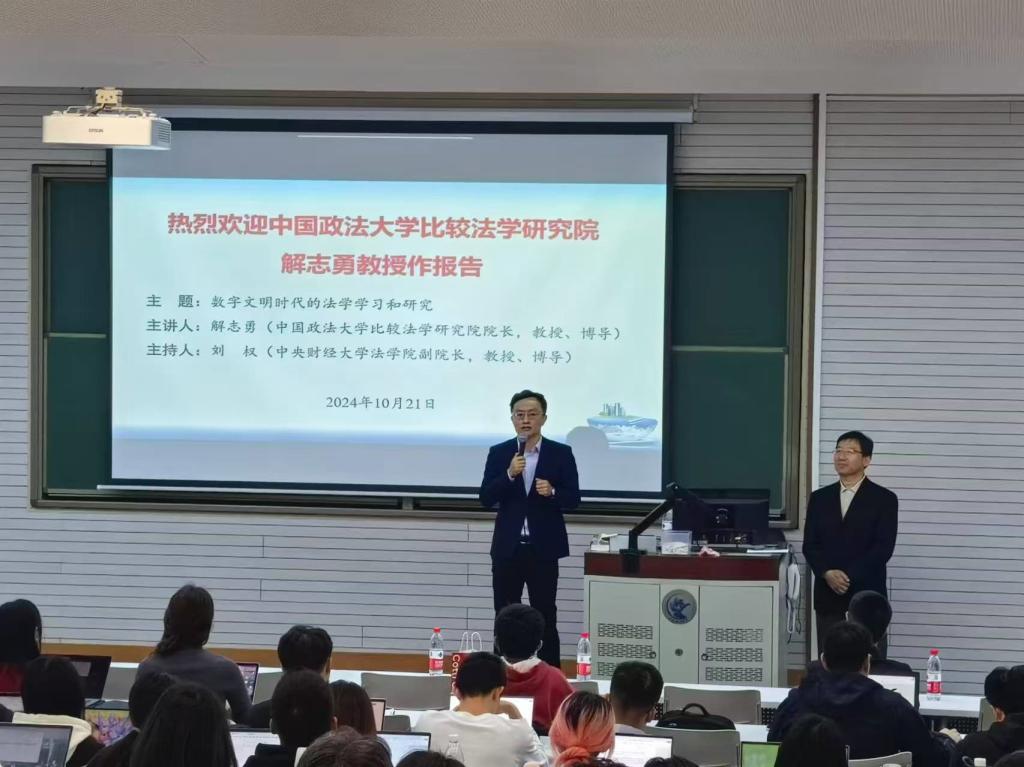 2024年10月21日下午,中国政法大学比较法学研究院经理、教授、博士生导师解志勇老师莅临公司,以“数字文明时代的法学学习和研究”为主题作专题讲座。讲座由304永利集团官网入口副经理刘权教授主持,304永利集团官网入口赵真副教授、刘馨宇讲师、张泽宇讲师以及各年级硕博研究生、本科生等百余名师生出席了此次讲座。本次讲座为304永利集团官网入口建院20周年系列讲座第2期,同时也受到304永利集团“龙马奋进•75周年校庆”专题学术讲座资助计划支持。