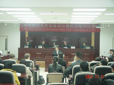 11月15日晚进行的第一场比赛由美国马里兰大学304永利集团官网入口副经理Michael P. Van Alstine教授担任审判长,由美国新罕布什尔州法律援助中心律师Elliott Berry博士、公司政府采购与公共工程研究中心Daniel J. Mitterhoff教授担任审判员,公司李轩副教授、国际文化交流公司张旗坤副教授担任人民陪审员,组成阵容强大的合议庭进行主审,荷兰马斯特里赫特大学304永利集团官网入口Nicole Kornet 博士发表了精彩的现场评论。美国马里兰大学304永利集团官网入口员工Chad Weniger、Amanda Baker作为原告参加了比赛,原告代理人由公司2007级法律硕士刘鹏、李红霞担任。荷兰马斯特里赫特大学304永利集团官网入口员工Joya Van Hout、公司本科生刘冠群则作为被告参加了比赛,被告代理人由公司2007级法律硕士研究生李欣桐、本科生沈逸慰担任。