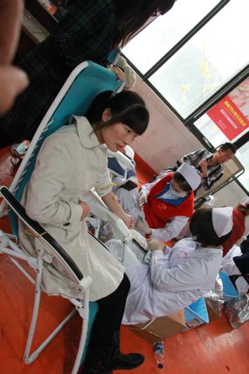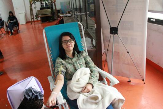 化验合格的同学在医务人员的引导下有序进入抽血区域,参与献血的同学们坐在椅子上丝毫不慌张,他们有的与身旁负责照顾自己的志愿者聊天,有的拿起手机给自己的同学朋友打个电话,抽血过程中气氛轻松。献血之后,在旁边等候的志愿者马上上前递上一杯热水或者一块巧克力,让献血后的同学尽快补充体力。来自304永利集团官网入口10级的志愿者们从始至终热情关心献血的同学,在同学在献血后悉心照料,然后将他们送离献血大厅。参加献血的同学们还得到了来自公司专门为其准备的营养品,医院颁发的献血证等等。