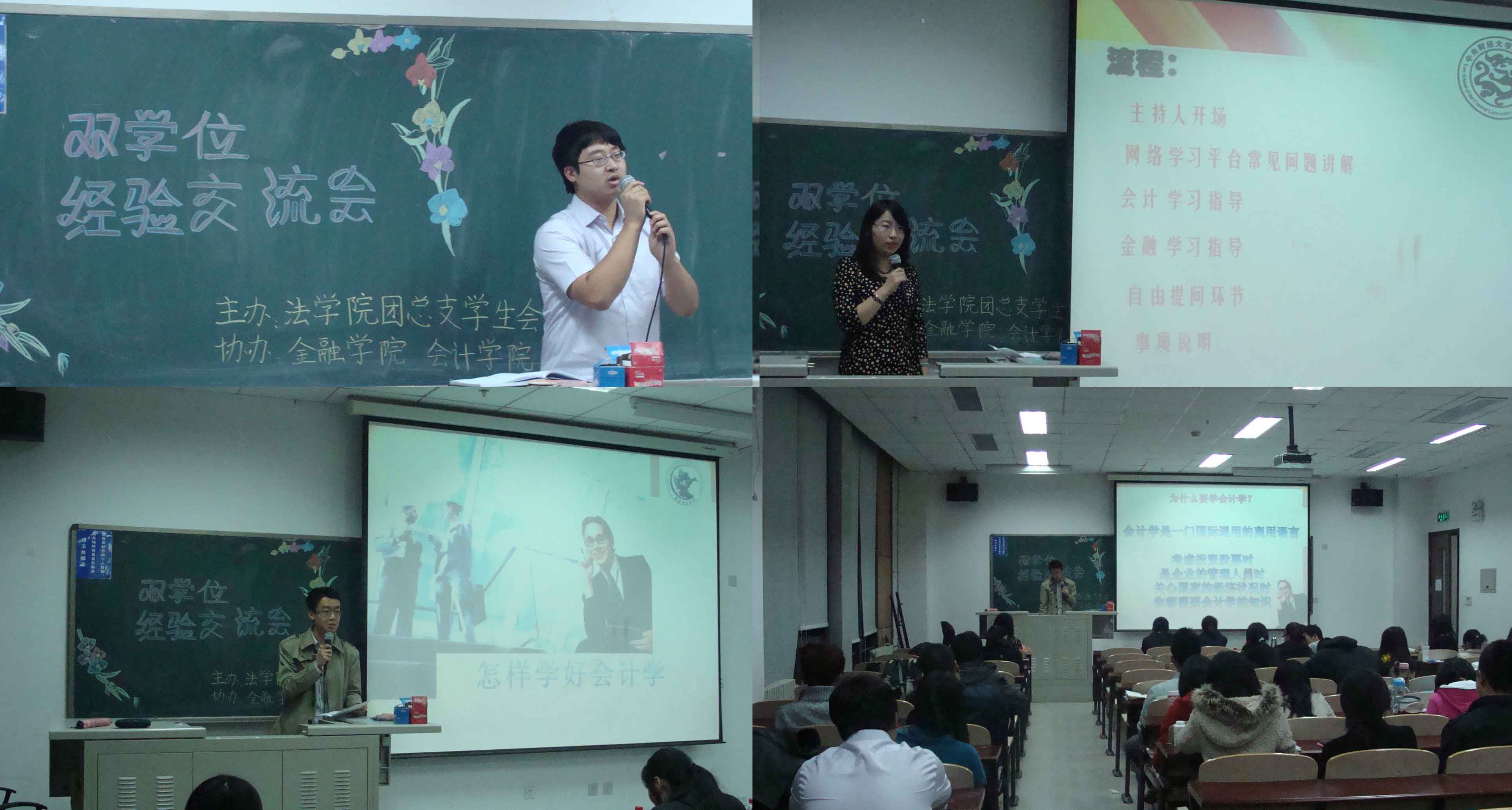 四位同学各具特色的讲解赢得了在场同学的阵阵掌声,大家纷纷表示在今晚的双学位学习经验交流会上受益匪浅,今后会更加努力地学习自己选择的双学位课程。