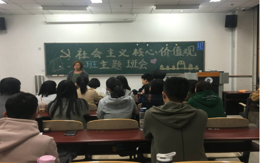 社会主义核心价值观起着统率社会价值理念、社会价值尺度的核心和灵魂的作用。为了帮助同学们树立正确的价值观念,深刻领悟价值观的内涵外延,2017年10月12日18:30,法学17-2班于沙河校区主教学楼308教室召开班会。会议由潘琦老师主持,法学17-1班主任郑人玮老师及班级全体同学参与了此次活动。