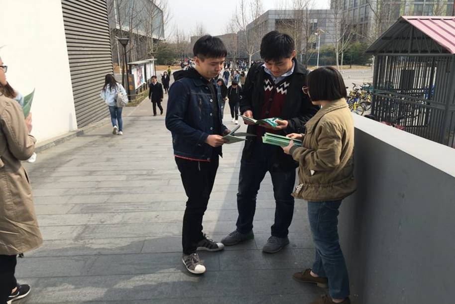 活动正式开始后,法援协会有条不紊地投入了宣传工作之中。大家拿起了手册、环保袋和纪念气球,主动向经过的同学们有序发放并积极宣传此次网络消费维权宣传活动,鼓励同学们踊跃参加。
