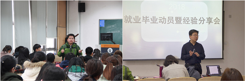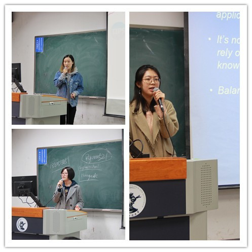 安然、王若珂和刘芮辰三位同学首先为大家讲述了自身出国、考研和保研的经历。从目标的确立到为理想奋斗的过程,再到收获果实的喜悦,从中不难发现每一种选择的背后都凝聚了对自我价值的不断探寻。现代社会多元的文化需求以及新媒体技术的发展,为人们带来了纷繁芜杂的信息渠道,也带来了更多的焦灼和忧虑。“追风”热潮带来的急性病使曾几何时伴随着鲜花和掌声迈入中财校门的学子们时常陷入苦苦追寻他人足迹的扭曲轨道。吴文国老师结合三位同学的发言和多年的员工工作经验谈到了看清未来的重要意义。每个人都是自己生命的主人,发觉真实的自己,是解决成长道路中抉择难题的万能之匙;而做好真实的自己,将会使对未来海市蜃楼般的憧憬转化为通向梦想彼岸的航船。