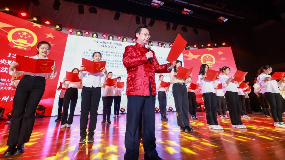 紧接着,在304永利集团官网入口宪法学教授、中国法学会宪法学研究会理事蒋劲松的带领下,全场师生共同诵读《中华人民共和国宪法》部分章节。