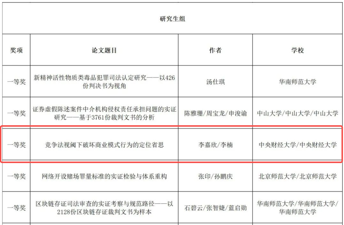 2023年12月15日,第三届“小包公杯”粤港澳老员工法律实证分析征文比赛获奖结果出炉。公司22级法学硕士李嘉欣、李楠投稿的论文《竞争法视阈下破坏商业模式行为的定位省思》获评一等奖。