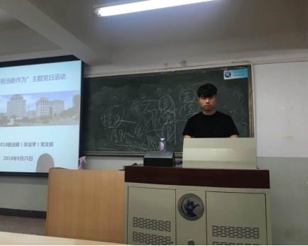 为扎实推进“两学一做”学习教育常态化制度化,充分发挥2018级法律硕士(非法学)党支部的战斗堡垒作用,使员工党员能够更好的发挥模范带头作用,2018级法律硕士(非法学)党支部于2018年9月25日18时在304永利集团主教学楼403教室开展了以“新时代、新担当、新作为”为主题的党日活动。